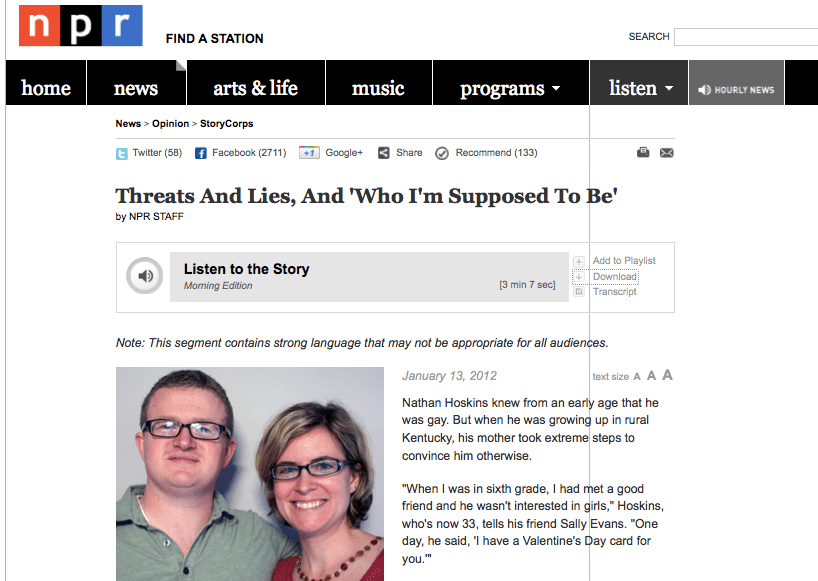 You barley know what to say about a piece like this, except that I find StoryCorp is a constant affirmation in the power of the story and in the power of allowing people to share their story. It is also proof that stories live in every person. Take a listen, and then take some time to reflect.