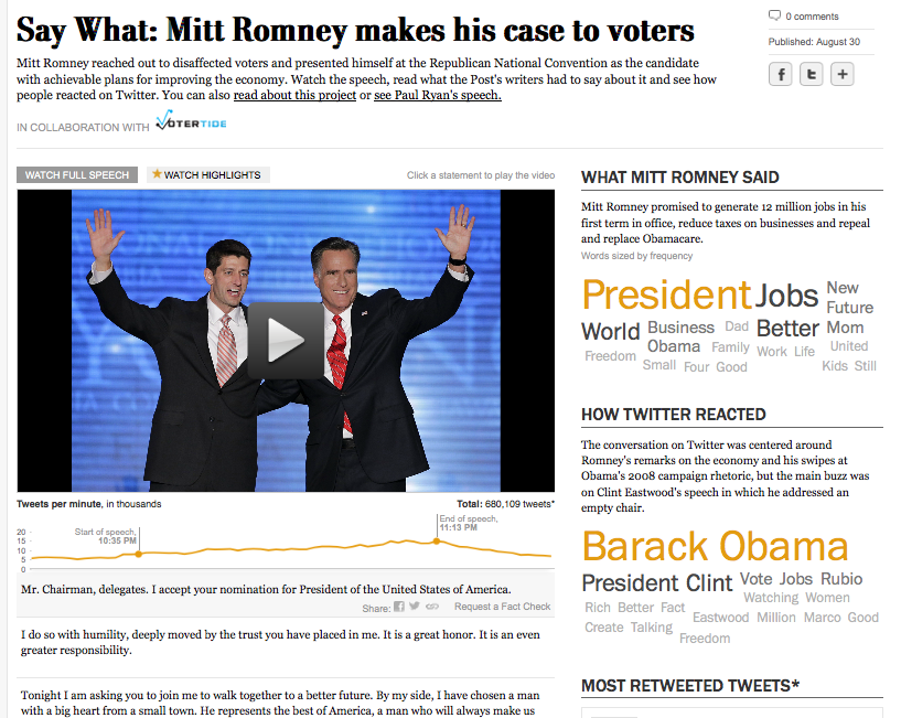 The Washington Post’s used the RNC as a platform to launch new interactive video analysis tool allows users to watch a speech and interact with the video.