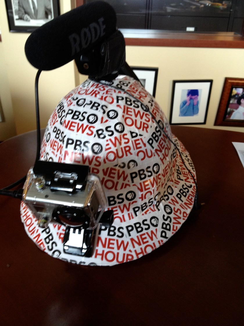 PBS NEWSHOUR tried out a live helmet camera at the RNC convention. A reporter wore a hardhat that was fitted with a GoPro camera and a Rode Shotgun mic. Then the camera and mic plugged into a device called a Live Shell.