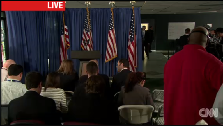 The campaign cleared the supporters out of the room and moved the journalists to a new setting.