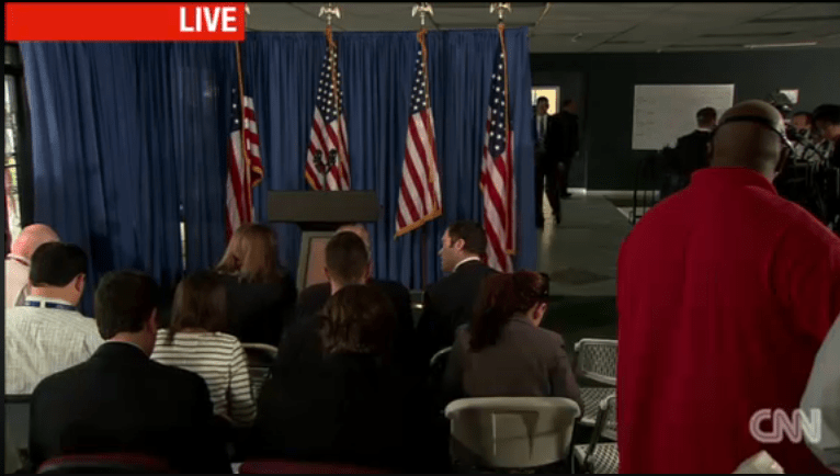 Especially in moments of crisis and tension, it is critical that candidates appear “presidential.” How would each of these comments have appeared to be different if they had campaign supporters cheering the statements, holding signs or if the candidate was not in dark suit and tie but in shirt sleeves?