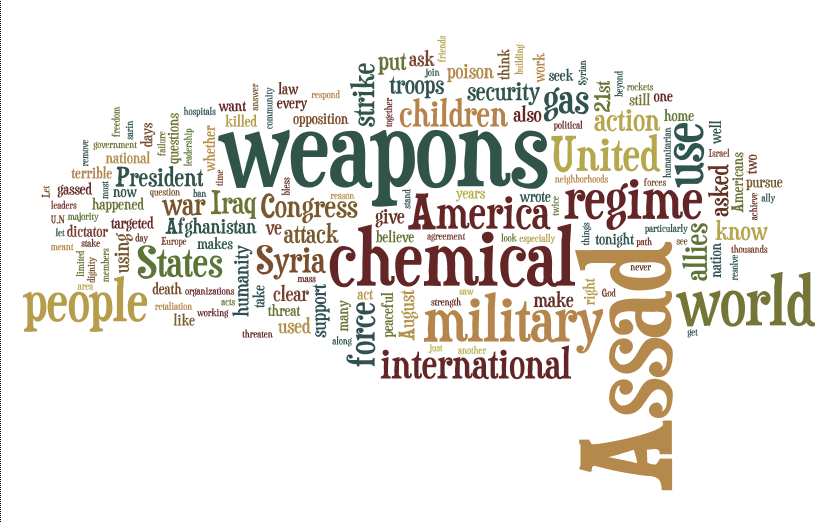 Then I dropped President Obama’s speech to the nation from Tuesday September 10, 2013 into the same tool. Notice the difference in tone.